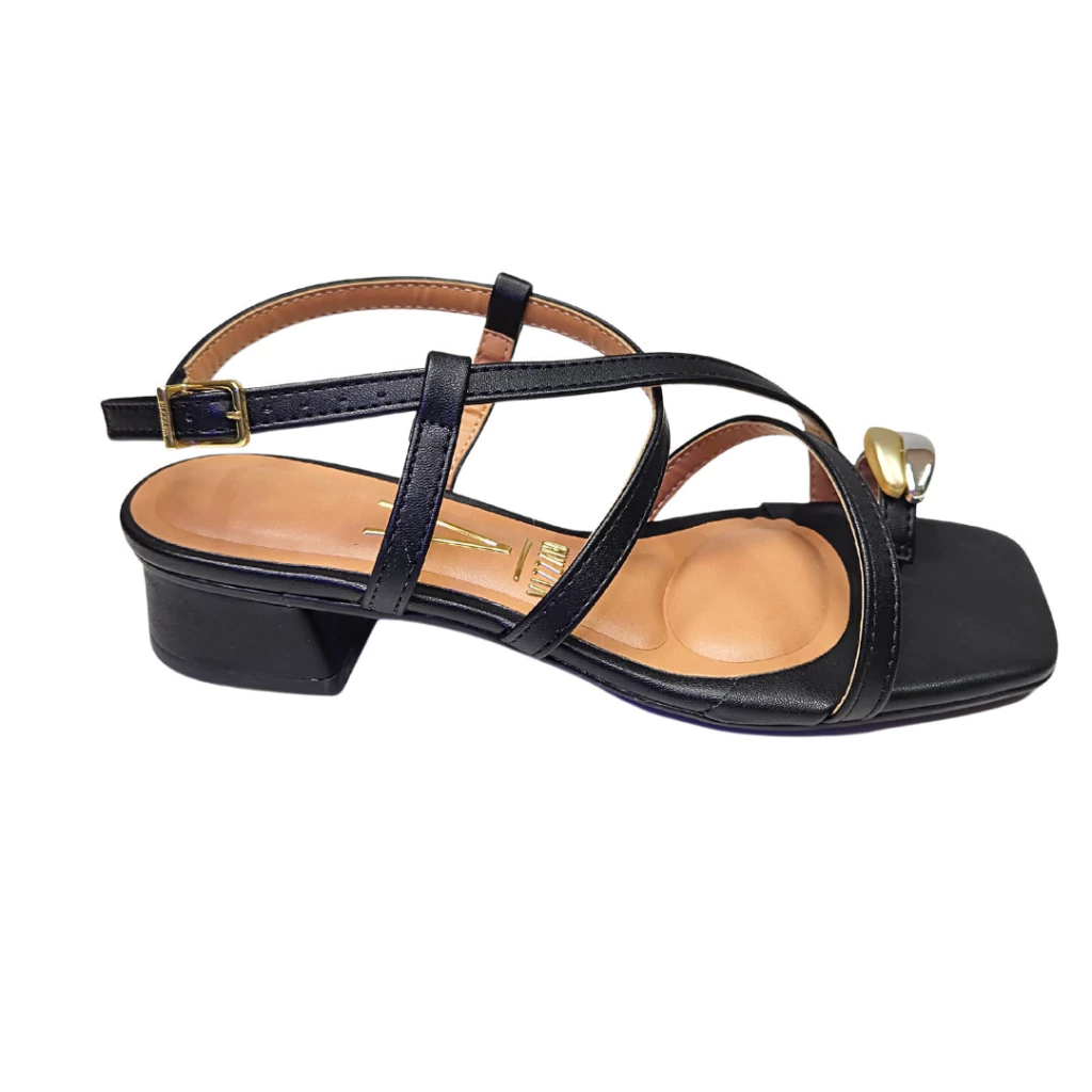 Elegante e versátil, essa sandália de salto baixo de 3 cm traz tiras finas cruzadas que valorizam o pé com sofisticação. Com bico quadrado moderno e fecho ajustável no tornozelo, ela é ideal para compor looks casuais ou sociais com muito charme. O salto confortável garante estabilidade para o uso diário ou eventos especiais.
