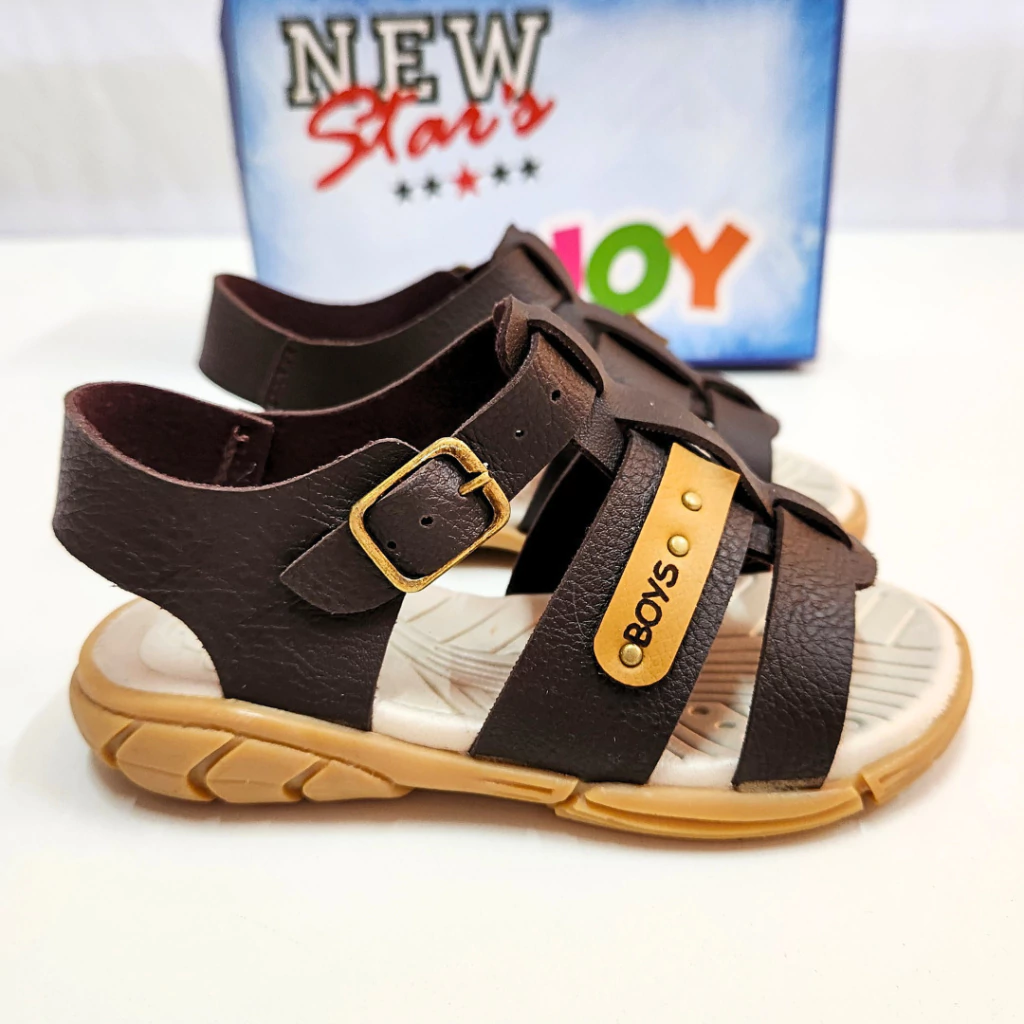 A sandália infantil masculina da New Star’s combina praticidade e charme em um design clássico. Produzida em tom marrom versátil, possui tiras resistentes com detalhe decorativo e fechamento em fivela para melhor ajuste e segurança. Seu solado anatômico e antiderrapante garante conforto e firmeza nos passos, ideal para passeios e momentos de diversão com muito estilo.